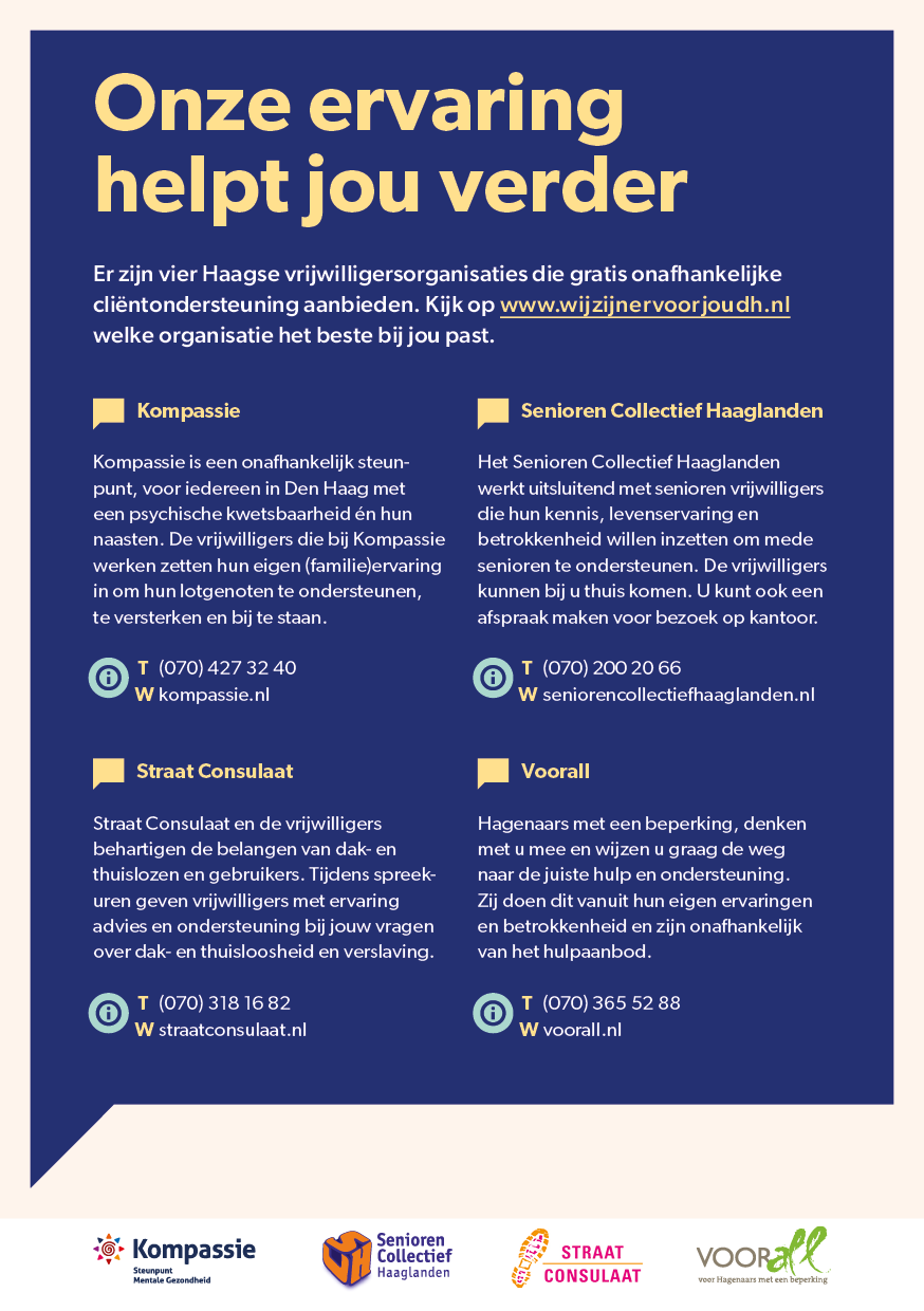 Graag willen we jullie zo goed mogelijk informeren over onze cliëntenondersteuning. We hebben voor jullie inhoudelijk materiaal gemaakt om in te zetten. Via de onderstaande linkjes vinden jullie de informatie die jullie kunnen inzetten. Voor vragen kun je contact opnemen met info@voorall.nl. Alvast bedankt voor het delen.
